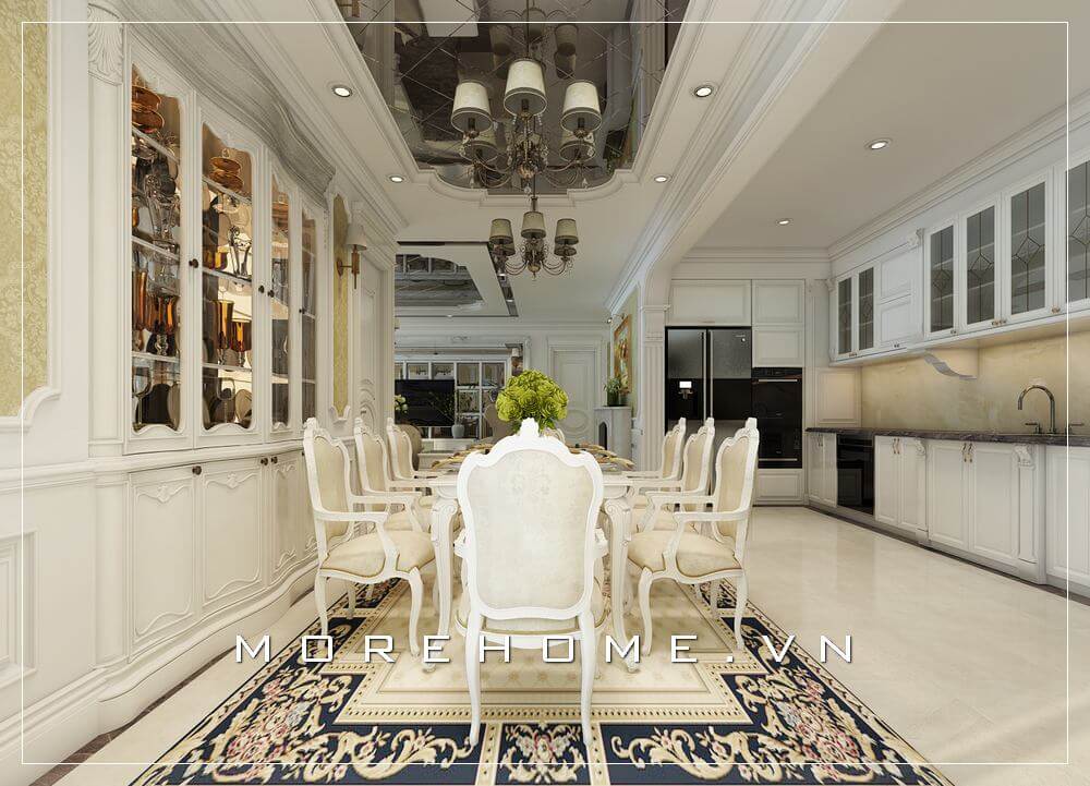 Không gian phòng ăn biệt thự được gia chủ khá chú tâm trong việc bố trí và sắp xếp đồ đạc do đây cũng là không gian sinh hoạt chung mang đến vẻ đẹp thẩm mỹ cho ngôi nhà. Sắp xếp nội thất phòng ăn biệt thự đẹp, sang trọng mang đến không gian sinh hoạt thoải mái và tiện nghi hơn cho các thành viên trong gia đình. Nếu bạn đang có nhu cầu thiết kế nội thất, thi công nội thất liên hệ ngay với chúng tôi để được tư vấn kịp thời nhất.