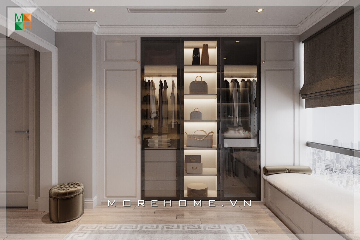 Thiết kế tủ quần áo phòng ngủ chung cư phong cách tân cổ điển