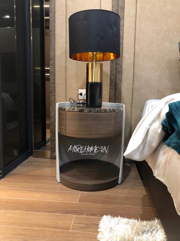Morehome sản xuất mẫu tab đầu giường phòng ngủ gỗ công nghiệp có mặt đá đen cao cấp theo phong cách hiện đại.